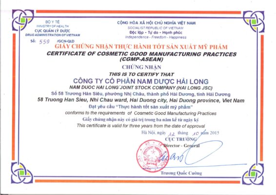 Chứng nhận và giải thưởng của Nam dược Hải Long